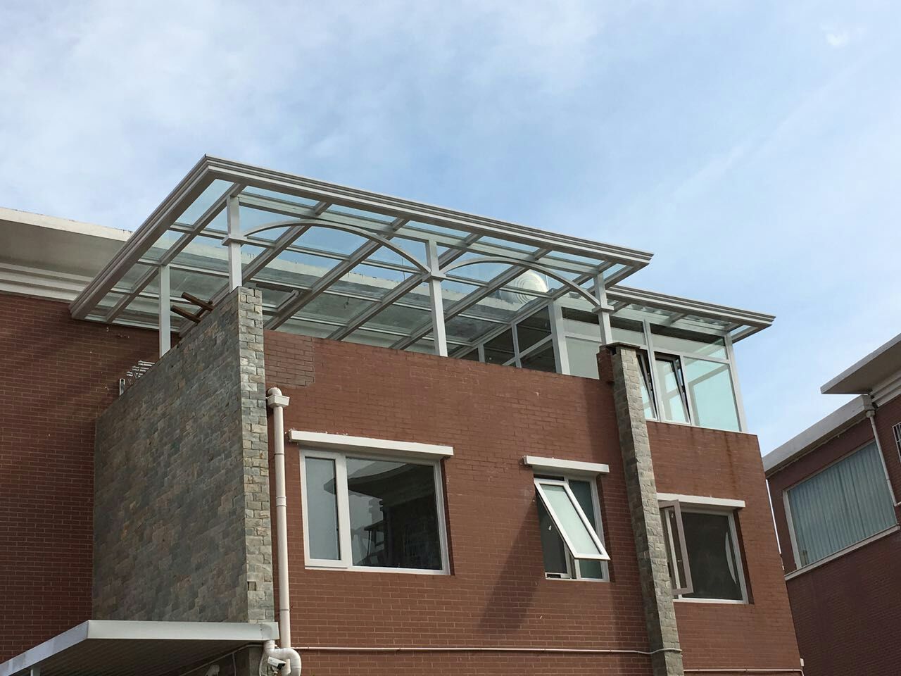 Canopy is a kind of building assembly which is set up on the top of the balcony or the entrance of the building to prevent rain, wind, and falling objects.